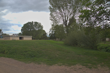 Creació d'una bassa de laminació de protecció en cas de riuades i una zona verda amb arbres davant les piscines